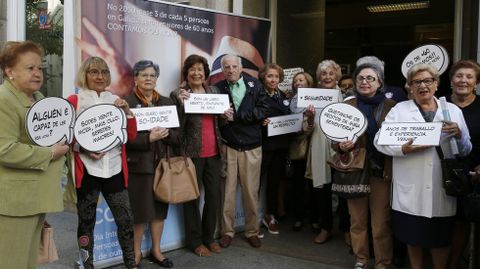 02 oct 2015 . Actualizado a las 05:00 h.La celebración del Día Internacional de los Mayores, creado por la ONU en 1990 para llamar la atención sobre la realidad de este colectivo, no podía pasar desapercibida en Ourense que, con su 30 % de personas que superan los 65 años, está entre los territorios europeos con mayor porcentaje de jubilados. Uno de los focos de interés fue el centro social de Afundación, que ofrece actividades para ellos todo el año. Ayer colocaron un photocall para que quienes lo deseasen se sumasen a la campaña para pedir entornos urbanos más accesibles y humanos para este colectivo. La iniciativa fue inaugurada por el médico José Luis Jiménez, miembro del patronato de Afundación, el alcalde Jesús Vázquez y el vicepresidente de la Diputación, Rosendo Fernández.