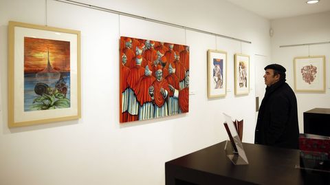 «Como quien escribe un cuadro» define la obra de Carlos Montero el diseñador y creador ourensano Roberto Verino; es «imaginación y pensamiento» para Alfredo Conde; «un arquitecto que irrumpe en el mundo de los sueños» para Isaac Díaz Pardo. Pinturas y dibujos, en un total de 13 obras de Carlos Montero se exponen en el Espacio de Arte Roberto Verino. El artista maneja con maestría desde un surrealismo alegórico y geómetra el lirismo poético de la narración, el humor y la ternura y un vitalismo heroico y emocional transigente y conocedor de la condición humana.