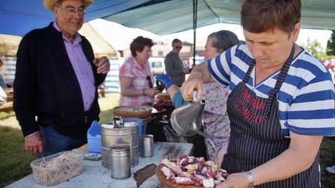 20 may 2018 . Actualizado a las 12:57 h.El pulpo á feira sigue teniendo un precio bastante popular en el ámbito que le da nombre a la receta, la feria. A ocho euros la ración lo vendía esta semana la Pulpería Tinoco de Celanova en la Romaría Raigame de Vilanova dos Infantes. Pero reconocen que el producto está subiendo en origen desde hace meses y que las raciones van por ello algo más pequeñas para mantener este precio. Al lado, Carmen, de la Pulpería Aurora de O Carballiño, apunta que la subida se puede ver en los precios de la lonja. «A vinte euros o kilo, e iso sen limpar e sen merma. Estamos aguantando e palmando para telo a nove euros a ración, porque a xente non dá asumido as subidas», sostiene la pulpeira. Entre los clientes, hay opiniones para todos los gustos. Margarita Parada y su marido no notan mucha variación en las raciones y aceptan las subidas de precio. «Dá moito traballo. Hai que mirar que o hai que pescar, haino que lavar, cocer e pagar os postos. Eu encontro o prezo normal», dice la mujer. Son de Monforte, pero están emigrados en Suiza y no se van a quitar el capricho de comer el pulpo cuando vienen por un euro más la ración. En otro grupo, Marina Tallón recuenta las últimas subidas. «Subiu desde setembro para aquí, estaba a sete euros, logo a oito e agora, a nove. O polbo que comemos xa non é das rías». «Pero estaba moi bo», replica su compañero de mesa. «Si vas a comer el pulpo gallego en sitios que montaron empresarios de Ourense en Asturias está bastante más caro, con lo cual somos unos privilegiados y las raciones son abundantes. Pagamos lo que sea, pero nunca dejaremos de comer el pulpo», sentencia Luis Badiola. «O que cobran por unha ración é o que lles costa a eles conxelado, pero non vamos deixar de comer polbo», tercia Juan José Andrade. En otra mesa, opinan que el precio debe ser «justo». Un cliente dice que hay quienes se aprovechan de las subidas, que el pulpo lo compran en Marruecos en grandes cantidades y que luego en las raciones recortan en todos los ingredientes. «Se suben o polbo, polo menos que non baixen as racións. Pero se o seguen subindo seguiremos comeéndoo», opina Santiago Fagilde.
