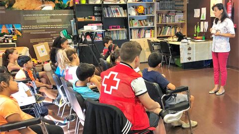 Los niños del campamento de Cruz Roja realizan una actividad sobre higiene bucodental