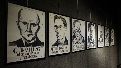 El Cercano muestra los retratos en forma de grabado de los principales intelectuales del grupo Nós con un pie de imagen que define a: Florentino Cuevillas -decruou na nosa prehistoria-, Arturo Noguerol -poeta e avivecedor-, Risco -soupo creare unha realidade do ditardes vago ser da Galiza-, Castelao - Nós-, Losada Dieguez -o guieiro-, Ramón Otero Pedrayo -o patriarca das letras galegas- y Ramón Cabanillas -poeta e patria- que, desde la inteligente ausencia en la reserva del color, resume con su especial caligrafía plástica la imagen de una generación que cambió nuestra historia y nuestra mentalidad.