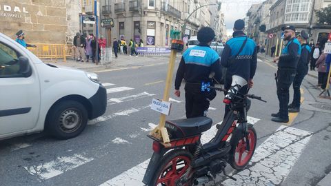 El entroido de Xinzo convive con tráilers en la N-525 y tractores en la autovía