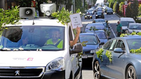 Protagonizaron una nueva protesta en coche para visibilizar lo que supondrá para las parroquias de Beade, Bembrive, Sárdoma la construcción del vial PO-010