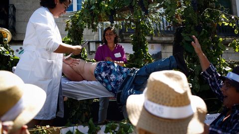 27 ago 2018 . Actualizado a las 17:19 h.Si algo hay que agradecer a los vecinos de Leiro es la pasión con la que cada año se preparan para festejar que la viticultura sigue siendo la base económica de las tierras de O Ribeiro. Se puede hacer con campañas promocionales, con misiones inversas o con proyectos innovadores, pero sin los viticultores, no habría vino. Y los que dentro de unas semanas saldrán al campo a recoger el fruto quisieron, un año mas, celebrar con todos que la tradición sigue viva, tanto la festiva como la cultural. El desfile de carrozas fue el acto central de una fiesta que ayer cumplió su 29 edición y que sigue joven y viva. Sobre todo si se tiene en cuenta la cantidad de niños que montados sobre tractores se pusieron a la faena y mostraron lo que empiezan a ver de sus padres y lo que les contaron de sus abuelos: el amor por la tierra. Mostraron cómo se prepara el vino nuevo, cómo se realizaba la pisada de la uva, simularon las fiesta que alrededor de la vendimia celebraban las familias y enseñaron las técnicas de fumigación. No en vano, en una de las carrozas el temido mildiu era protagonista. Además, este año añadieron un nuevo componente, el uso de los caldos do Ribeiro con finalidades estéticas, para recordar que desde este verano la localidad cuenta con el primer spa de vino de Galicia. Y a más de uno no le importó darse allí mismo un baño para mostrar las cualidades extraordinarias que tiene para la piel o dejarse masajear por improvisadas esteticistas. El actor Marcos Pereiro, conocido por Mucha e Nucha, fue el encargado de pregonar la Festa da Vendima. La primera anécdota la protagonizó un micrófono demasiado alto y la bajada de tono de su voz, fruto, dijo, de una buena noche probando Ribeiro. Pero si dejó a todos sorprendidos con algo fue con una afirmación: «¡Aspas é de Leiro!». Relató que los padres del futbolista se conocieron haciendo la vendimia en tierras de O Ribeiro, relacionando su acierto en la portería con este hecho y sorprendiendo incluso al alcalde, Francisco Fernández que, seguramente, estará pensando en el pregonero del año que viene.