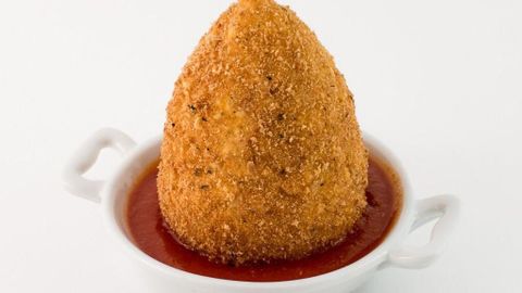 Bohemia. «Volcán Bohemia». Es una croqueta de arroz empanada con relleno de carne de ternera, huevo cocido, guisantes y queso mozzarella.