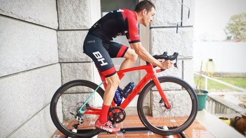 Además de atender la faceta social y pública de su puesto como biker profesional, Rodríguez Guede se entrena en casa con los medios de los que dispone para mantenerse en forma. Está pasando el confinamiento en casa de sus padres en Maceda, y agradece tener un espacio más amplio y con jardín al aire libre para variar sus prácticas. Le acompaña su pareja, la también biker profesional Ane Santesteban. «Na casa non podes facer tantos quilómetros. Teño un medio ximnasio e rodillo. Fago un terzo dos quilómetros semanais que facía, adestrando de dez a doce horas por semana», cuenta sobre su plan de mantenimiento. Más cantidad y más tiempo tampoco tendría mucho sentido ahora mismo. «Non sabes o que estás preparando, isto é para non perder o traballo feito durante o inverno e por acaso isto baixa e arranca todo», opina el corredor. En todo caso, Pablo Rodríguez estima que los grandes eventos de esta temporada ya no se harán: «Hai moita incerteza, pero tamén tranquilidade porque o máis importante ao final non é o deporte senón as persoas que están enfermas».