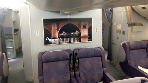 23 may 2018 . Actualizado a las 07:52 h.Los pasajeros que se suban al Boeing 777 Auria para realizar la ruta Roma-Nueva York conocerán la ciudad no solo por el nombre de la aeronave -que pertenece a la compañía Privilege Style, del ourensano Chema Álvarez- sino también por las fotografías de las termas, la catedral y los puentes de la ciudad que ha cedido el Concello. Fue el propio empresario el que trasladó la idea de colocar fotografías de Ourense en la cabina y el alcalde, Jesús Vázquez, recogió el guante para aprovechar la oportunidad de promocionar turísticamente la ciudad. Hasta 3.600 personas viajan en ese avión cada semana. El alcalde agradeció la generosidad del empresario, «una persona que ama su ciudad pese a la distancia y busca ayudar al despegue de su querida tierra». El nombre del avión ya se había elegido por votación popular.
