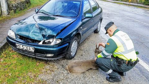 El conductor está ileso y el animal será trasladado al centro de recuperación da fauna de O Rodicio