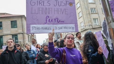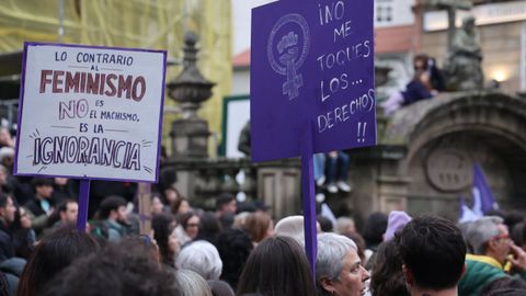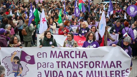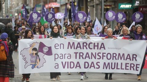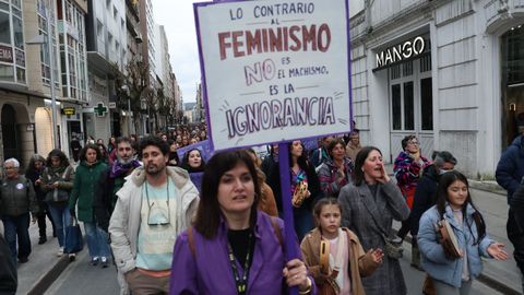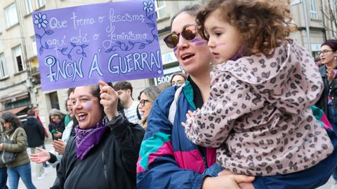Reconocimientos a trabajadoras y emprendedoras, carreras festivas, lecturas de manifiestos... No hay una forma establecida para celebrar el 8M, el Día Internacional de la Mujer, y por eso ayer en Galicia hubo una representación variada de un movimiento tan plural como el feminista, que volvió a salir a la calle para reivindicar una igualdad efectiva, no solo sobre el papel del «BOE». Unas marchas en las que se enarbolaron banderas habituales, como la que reclama la abolición de la prostitución, pero sin dejar otras batallas más de actualidad que nunca, como el rechazo a un neofascismo que cuestiona derechos adquiridos y el «No a la guerra» frente a los intentos de presentarla como una liberación de las mujeres más oprimidas del planeta.
