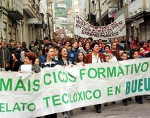 05 jun 2000 . Actualizado a las 07:00 h.El motivo de las movilizaciones se encuentra en la reivindicación del bachillerato tecnológico en el municipio, petición desestimada por la Consellería de Educación. El funcionamiento normal del Concello sólo pudo iniciarse con la presencia de efectivos de la Guardia Civil. Una docena de agentes formó un pasillo junto a la puerta por donde entraron funcionarios, el alcalde y algunos concejales del equipo de gobierno. Después, los padres siguieron concentrados frente al Concello hasta las once de la mañana. Uno de los portavoces de la Plataforma, Manuel Bacelar, señaló que «nós non vimos contra o alcalde, sino para que con esta protesta tomen nota en Santiago e o reciban porque temos dereito a que os nosos fillos poidan estudiar en Bueu». Otro de los miembros de la directiva, Manuela Cerviño, explicó que «o noso obxectivo era unha chamada de atención e que non imos a seguir durmindo». Por su parte, el alcalde de Bueu, Tomás Barreiro, calificó esta protesta de «carente de sentido» y matizó que sus organizadores estaban «desnortados». Barreiro indicó que «eu sempre estiven a favor do diálogo pero impedir o funcionamento do Concello é saltarse a lei» y añadió que «dame pena ver ós politiquillos que manexan o tema. O que fixeron é un pouco grave e a actitude dos concelleiros da oposición foi penosa». La Plataforma do Ensino ha elaborado un calendario de movilizaciones que concluirán el 20 de junio. En esa fecha está prevista una huelga general y una manifestación.