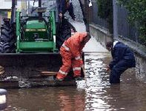 SECUELAS DEL TEMPORAL El desalentador parte meteorológico emitido ayer por el Instituto Nacional de Meteorología, anunciando fuertes lluvias de entre 50 y 60 litros por metro cuadrado y vientos con rachas de hasta 100 kilómetros, mantiene movilizada a la comarca de Pontevedra.