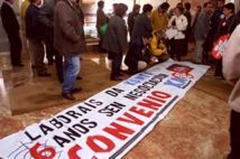 Más de medio centenar de delegados de comités del personal laboral de la Xunta, pertenecientes a diverass consellerías, protagonizaron ayer un encierro en la Delegación Provincial da Presidencia para exigir el fin del bloqueo de la negociación colectiva. Aunque el encierro tenía inicialmente carácter indefinido, la policía les conminó a abandorarlo pasadas las 15.30 horas. En la protesta participaron delegados de CC OO, UGT, CIG y CSI-CSIF. Hasta junio están previstas varias medidas de presión para exigir un nuevo convenio colectivo, toda vez que el vigente lleva prorrogado desde 1992.