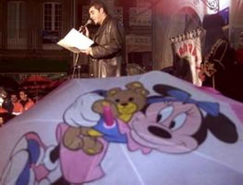 El actor arremete contra la gestión del «Prestige» en la apertura del carnaval Caña a todo el mundo. Pero con una clara conclusión: que el 25 de mayo los pontevedreses «non paguedes a quen vos insulta, que sodes unos batasuneiros nesta cidade». El pregón del actor gallego Carlos Blanco acabó con un marcado tono político: «Non o esquenzades. Non lle paguedes un bo soldo con cargo ó erario público a quen non se desvela por vós, que se non é porque decidimos que alonxamos o barco a ver a que se lía aquí».