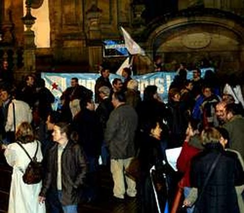 ?lrededor de un centenar de pontevedreses secundaron ayer la concentración convocada por la Plataforma Nunca Máis para protestar por «a propaganda, as mentiras e a incompetencia do gobernos da Xunta e de Madrid». El colectivo denunciaba con el acto de ayer la situación de «indefensión e marxinación» en que queda Galicia, en su opinión, tras la lectura de los presupuestos generales del Estado para el 2004. «Os investimentos previstos non chegan ó 4,5% do total, cando en Galicia vive o 6,5% do conxunto da poboación do Estado».