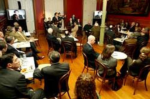 14 ene 2006 . Actualizado a las 06:00 h.Valentín Paz Andrade, Ramón Cabanillas, Alfonso Castelao, Alexandre Bóveda, Carlos Casares y Manuel Quiroga -que conforman el nuevo grupo escultórico inaugurado el viernes por Caixa Galicia y el Concello de Pontevedra- están dispuestos a disputar el protagonismo del que hasta ahora disfrutaba sin lugar a dudas otro notable, Ramón María del Valle Inclán. Si el padre de los esperpentos era desde su estática posición en la plaza de Méndez Núñez el hombre más retratado de Pontevedra, ahora tendrá que medir su poder de atracción con los citados y no menos ilustres. Y ayer ganaron éstos por goleada. Desliz Niños y mayores se acercaron a charlar un ratito a esta artítistica tertulia aprovechando los rayos de sol. Ayer lo tenían más fácil, porque aún permanecía la pequeña escalinata colocada para la inauguración. Pero cuando la retiren, va a estar difícil, y no diagamos para los minusválidos, porque la altura de la peana que sustenta las figuras de César Lombera tiene una altura considerable. ¿Cómo habrá tenido un desliz así un Ayuntamiento tan sensibilizado con hacer de Pontevedra una ciudad accesible?.. Con tanta prisa y tan poco espacio, ayer no pudimos contarles que entre los invitados al resurgimiento de la tertulia que se evoca a las puertas del Café Moderno, no sólo estuvieron José Luis Méndez y su «ben querido amigo Fernández Lores», quienes siguen teniendo pendientes una cita para hacerse la foto más buscada del año que acaba de estrenarse. Los dos hijos de Carlos Casares, Hakon y Christian, compartieron mesa con el director general de Caixa Galicia y el alcalde, mientras que los de Bóveda, Amalia y José Luis, se sentaron en la más próxima a la presidencial. El director del Museo, Carlos Valle, los empresarios Eugenio Sobral, Nino Mirón y su hermano Ricardo, Manuel Durán, que sigue dispuesto a cederle el testigo al anterior al frente de la Cámara, o los políticos Teresa Pedrosa, José Covelo y Jose Antonio García Lores también compartieron cafelito en esta gran tertulia.
