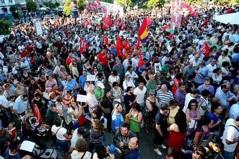 «Eu asistín as manifestacións de Nunca Máis e de Non á Guerra e foron manifestacións similares», apuntó Rafael Iglesias, secretario comarcal de CIG, mientras veía llegar a la marea humana a la Subdelegación del Gobierno. «De feito, tivémonos que desviar ó principio de Benito Corbal polo casco vello para evitar empatar co final da protesta», añadía. Del mismo modo, Miguel Vilacoba, presidente de la Federación Teucro, comparaba ayer el éxito de convocatoria de la marcha contra los recortes con las grandes convocatorias que acogió la ciudad.