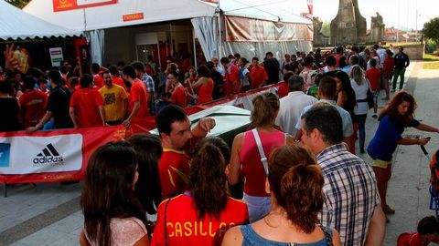 07 sep 2012 . Actualizado a las 07:00 h.El Village Club de la Selección Española instalado en el paseo de Montero Ríos se convirtió ayer en la gran fiesta de la afición de la Roja, en vísperas del partido que España jugará hoy en Pasarón contra Arabia Saudí.