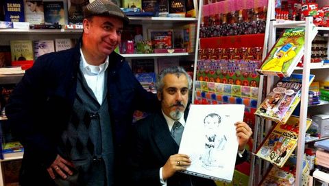 La presentación ayer de la biografía de John Balan en la librería Baroja se terminó convirtiendo en una sorpresa para su autor, Wladimir Dragossán. No en vano, Rafael Prieto le entregó la caricatura del cartel de la exposición de acuarelas que protagonizó en el 2008 y en la que el escritor pontevedrés recitó poesía.