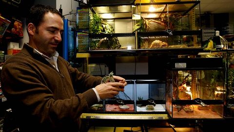Moisés García Martínez es el primero en defender las campañas de sensibilización, orientación y concienciación sobre la responsabilidad que entraña la posesión de mascotas exóticas. Lleva casi veinte años dedicado al cuidado y comercialización de animales y de toda clase de productos para su más exquisito cuidado. Su tienda de Echegaray es un paraíso de acuarios y terrarios. Asegura que la afición a tener en casa determinadas especies ha decaído por la crisis, «que a todos nos afecta». Pero aún así, el mundo animal sigue despertando pasiones. En estas fechas navideñas hay gente que opta por este tipo de regalos, pero este profesional advierte que un animal no es un juguete y no se le puede regalar a cualquiera. «Nosotros insistimos mucho en ello a nuestros clientes porque somos los primeros a los que no nos interesa que pueda acabar por ahí tirado». Y en un negocio de este tipo, «eso sería pan para hoy hambre para mañana», añade.