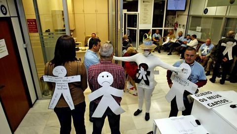 Los afectados asaltaron la planta baja del Concello y permanecieron hasta última hora de la noche para hacer oír su voz. A media tarde sacaron champán y brindaron por recuperar su dinero. «A los afectados por las subordinadas solo nos queda la vía judicial», indica Prado en medio de los afectados, la mayoría de ellos ya habían superado la edad de jubilación. A las puertas de ella estaba José Luis Rodríguez, que tiene atrapados en subordinadas cerca de 50.000 euros desde el 2003.