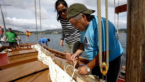 «A última foto que me fixeron foi a da primeira comunión, sácame ben», bromeaba mientras ataba los cabos y recogía la vela con algo de ayuda de los encargados del evento. «E logo, ¿a da mili non a sacaches ou?», le recriminaba uno de les presentes. Manuel reía y seguía recogiendo y preparando la embarcación para dejarla amarrada y bien situada para hoy.