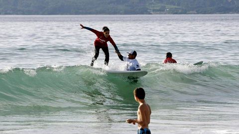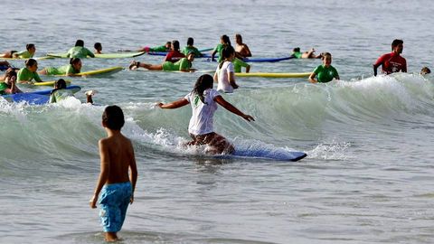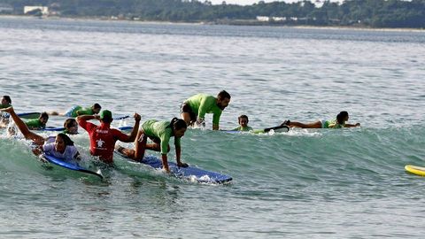 A Lanzada fue sede base de la organización y, como tal, allí se organizaron actividades en las que participaron más de trescientos niños de las escuelas deportivas de la provincia. Para muchos, este fue su primer contacto con el surf. Para despedir el certamen, el arenal vivió ayer una gran fiesta en la que estaba previsto que participaran más de un millar de escolares.