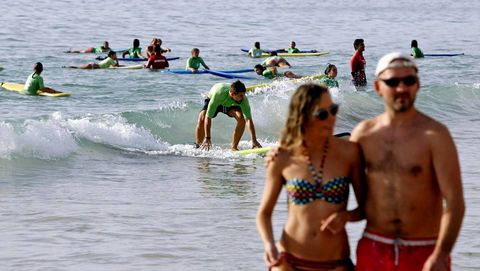 22 sep 2013 . Actualizado a las 23:37 h.Finalmente no fue posible que los surfistas compitieran en la playa de A Lanzada. Pero eso no significó que el arenal no se llenara de fans de este deporte durante todo el fin de semana. Y es que aunque los profesionales se tuvieron que ir a competir a Oia, los aficionados pudieron disfrutar de un sinfín de actividades en este arenal.