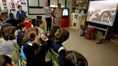 24 ene 2014 . Actualizado a las 07:00 h.Stanley, Samuel, Ángela, Lucas, Serafín... Son ingleses, naceron e viven en Londres, pero son fillos ou netos de galegos e estudan a nosa lingua como materia optativa no colexio español Cañada Blanch da capital británica. Onte coñeceron por videoconferencia aos rapaces dos colexios de Xeve, Lérez e Campañó que participan con eles no programa Ponte a Londres!, unha iniciativa innovadora de intercambio educativo impulsada pola Concellería de Normalización do Concello de Pontevedra e polos equipos de dinamización dos citados centros, para maior coñecemento e divulgación da riqueza da nosa cultura. A conexión audiovisual por Internet foi todo un éxito, aínda que aos de Santo André de Xeve non lles funcionou a cámara e os demais só puideron escoitalos. Os nenos falaron das súas cousas, do que fan no colexio e das súas afeccións. E os de aquí fixéronlle aos ingleses a gran pregunta, que contestaron como bos descendentes de galegos. «¿Stanley, por queres aprender galego?». «¿E por que non?», respondeu. Por certo, todos os escolares londinenses dixeron que eran do Celta e os profesores dos centros pontevedreses quedaron sorprendidos do ben que falan en galego, «case mellor que os nosos».