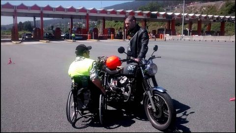Miembros de Aspaym acompañaron ayer a agentes de Tráfico en un control en el peaje de la autopista AP-9