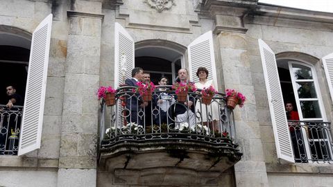 Para los que seguían el pregón desde el interior de Mugartegui se proyectaron en una televisión viñetas del autor. Allí estaban miembros de todos los grupos de la corporación municipal y representantes de la sociedad pontevedresa. Da Silva recordó el semanario O Galiciano de Rufino Rivera, que con imprenta en la calle Real publicó en 1888 la que está considerada como la primera banda diseñada gallega.