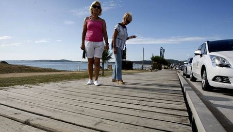 Una veraneante de Cartagena pierde un diente y sufre magulladuras tras tropezar en el polémico entarimado del paseo de A Lanzada