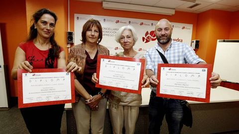 Agustín Cabrera, María Jesús Iglesias y Alicia Blanco recibieron ayer los premios del concurso convocado por el Concello pontevedrés