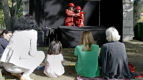 Familias al completo compartiendo paseo en bici y muchos andarines con perros, todos con sus correas, dieron vida a un espacio natural, la Illa de Esculturas o Illa do Covo, que quizá sigue sin estar lo suficientemente valorado a pesar de ser un lujo para cualquier ciudad. Las sombras a pie del río Lérez se cotizaban mientras arrancaba la oferta vespertina, que se abrió con Ne me quitte pas, el espectáculo de manipulación de globos de la compañía O retrete de Dorian Grey. Solo alguna tímida queja que echaba en falta megafonía para oír mejor a los artistas.