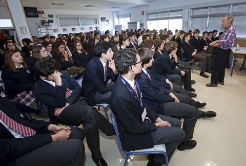 18 ene 2017 . Actualizado a las 05:00 h.El científico Ángel Carracedo accedió ayer a regresar a las aulas, aunque solo para impartir sendas conferencias en el SEK (en la imagen) y el IES Montecelo. Los alumnos aprovecharon para preguntarle todas sus curiosidades.