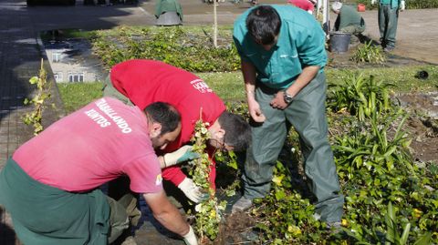 Trabajadores con discapacidad de la Fundación Juan XXIII y alumnos del CEE Príncipe Felipe arreglaron jardines en el parque urbano Amalia Álvarez