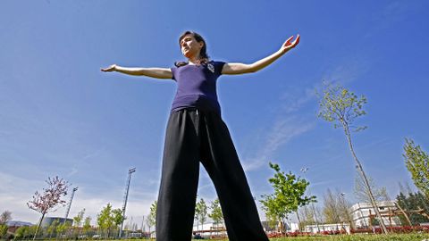 11 abr 2017 . Actualizado a las 05:00 h.La cita con Paula Cores, pontevedresa y profesora de artes taoístas, estaba prevista ayer a las doce en punto en la Illa das Esculturas, con la intención de hablar con el sol bajo las cabezas y respirar aire fresco. Solo unos minutos antes, cuando las campanadas del mediodía ya estaban a punto de sonar, el estrés se imponía. No en vano, los coches, como de costumbre, abarrotaban los cinturones viarios pontevedreses y parecía imposible llegar a tiempo a la entrevista con esta mujer. La suma de las prisas y el calor de una Semana Santa empeñada en ser verano obligaban a ponerle al día el adjetivo de agobiante. Hasta que apareció Paula en escena. Tal cual. Algo tiene ella que casi, casi es como si parase el tiempo... Quizás sea su sonrisa tranquila. A lo mejor son sus palabras parsimoniosas. Igual sus silencios nada incómodos. Pero imprime calma a la charla desde el minuto cero. Se ríe cuando uno se lo dice, e indica: «A veces también soy nerviosa. Pero sí, digamos que aprendí a tomarme las cosas con calma».