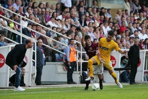 Armando fue el siguiente en dar un paso adelante para los visitantes con una ocasión clara en forma de disparo largo que se fue a la derecha. Era el minuto 37, y los granates todavía no sabían que sería la última jugada con un 0-1. Poco más de sesenta segundos después un despeje largo de Portela se volvía en contra de toda la primera plantilla y su afición, al habilitar a un Guardiola que, de no haber tocado el granate el balón, habría estado en un claro fuera de juego.
