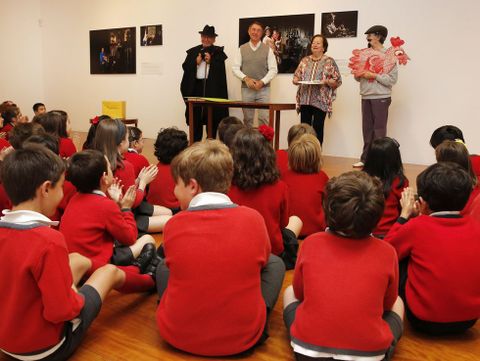 Pequeños y mayores se unieron ayer en una sesión de cuentacuentos en la los adultos actuaban y los niños descubrían el libro de Casares