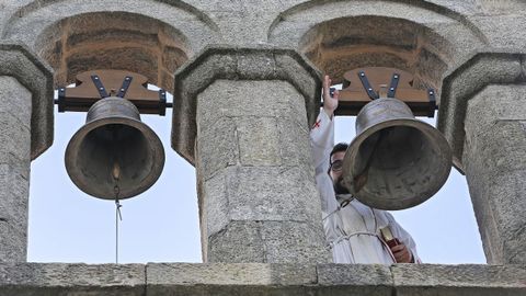 San Roque presume desde ayer de sus dos nuevas campanas bendecidas, de bronce y refundidas por los campaneros artesanos de la familia Ocampo, en Arcos da Condesa, siguiendo el método tradicional que llevan empleando desde el siglo XVII.