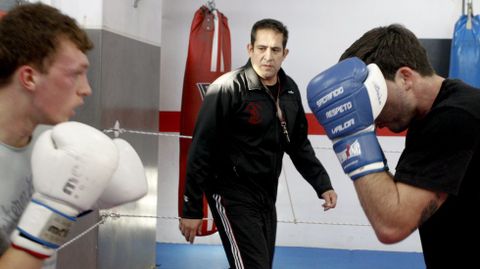 El recuerdo de aquella pelea todavía es amargo. No por no ser el primero, sino por no volver a tener la oportunidad de serlo. «En un salto en paracaídas sufrí un accidente grave y me rompí las rodillas. Con el tiempo han ido a peor y me dijeron que tenía que dejar de pelear», cuenta. Más de veinte años y siete operaciones después, fue esta caída el motivo por el que solicitó la baja de la Guardia Civil, el cuerpo al que dedicó media vida. Siempre con el boxeo presente. Fuera del ring, entrenando a otros. Supo seguir vinculado a lo que más le gusta. O Barco de Valdeorras, Navarra y ahora, y desde hace diez años, Vilagarcía son los lugares donde contagió su entusiasmo. Entre cincuenta y sesenta personas, depende del mes, entrenan con él. Primero fue el club. Después el local. Y, con la suma de ambos, empezó la difusión de la cara más amable del boxeo.