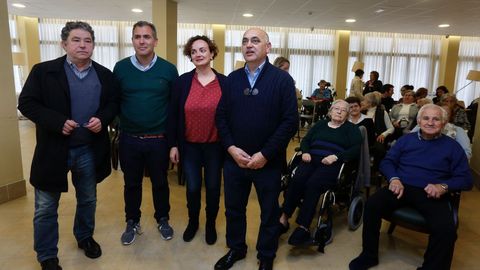 Los candidatos a la alcaldía de Pontevedra del BNG (Miguel Anxo Fernández Lores), PP (Rafa Domínguez), y PSOE (Tino Fernández), y la numero 6 de la lista de Marea (Herminia Dios), participaron ayer en un debate preelectoral convocado por la residencia de mayores Soremay. La idea era que cada fuerza política diera a conocer sus respectivas propuestas de cara a este segmento de la población. De los grupos actualmente representados en la corporación municipal solo faltó Ciudadanos, que declinó la invitación debido a que todavía no se ha hecho oficial el nombre del candidato a la alcaldía. foto Ramón leiro