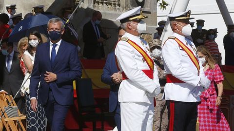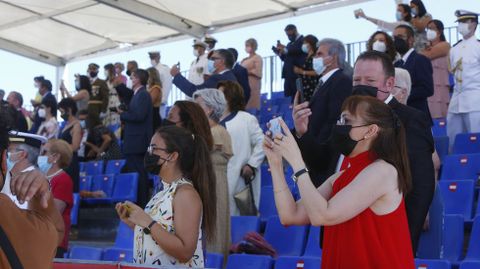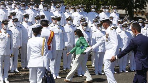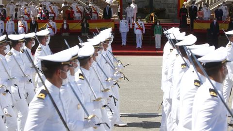 Ante la ausencia del rey Felipe VI, que no acude a Marín por el día del Carmen desde hace varios años, los actos militares los presidió la ministra de Defensa, la socialista Margarita Robles, que ya visitó esta institución castrense en noviembre del 2019. También hubo una amplia representación de autoridades civiles y militares.