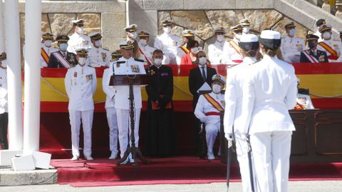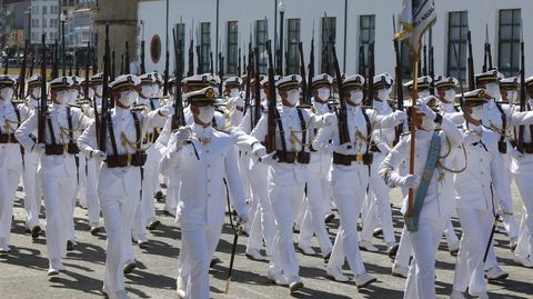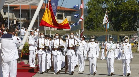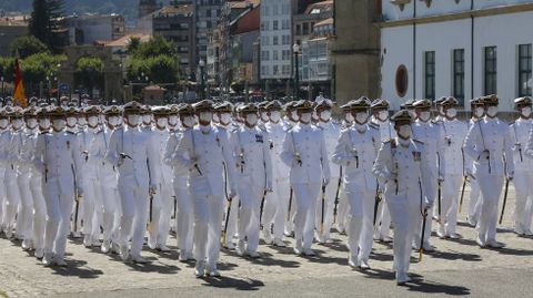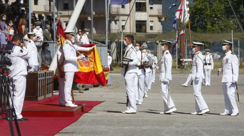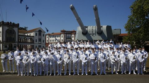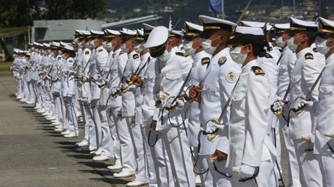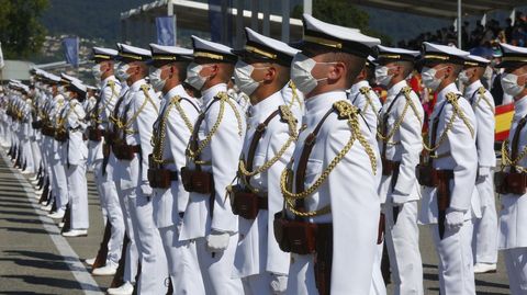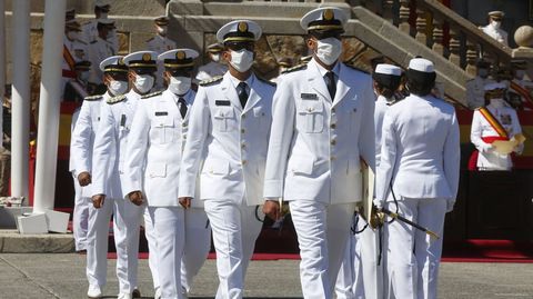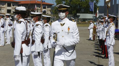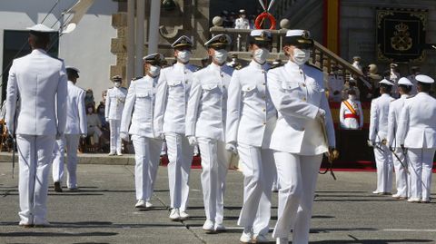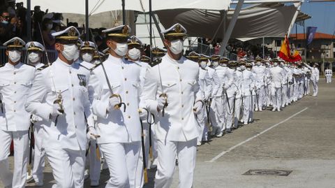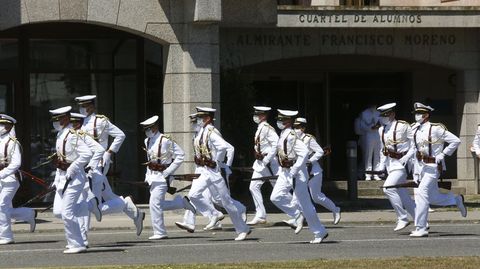 Asimismo, los alumnos que acabaron este año su preparación recogieron los reales despachos con los destinos como nuevos oficiales de la Armada española. En total son 118, de los que diez son mujeres. Los actos remataron con un desfile por la explanada.