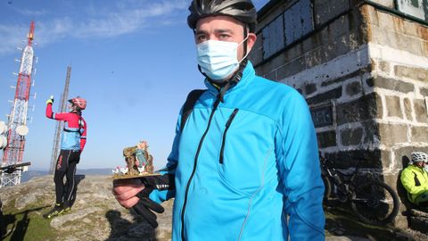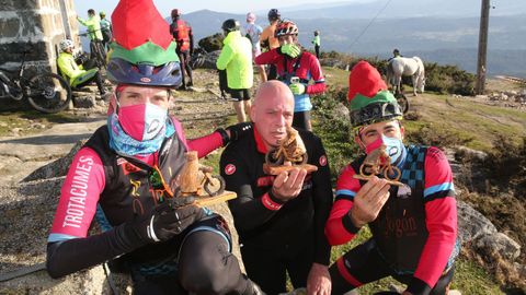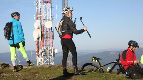 Los ciclistas subieron al monte para colocar sus figuritas bajo las antenas