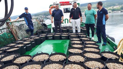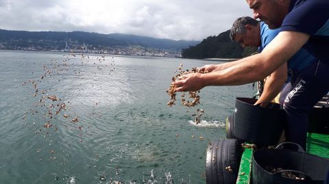 Las cofradías distribuyen en los bancos de la ría 2,2 millones de almeja