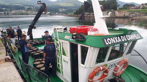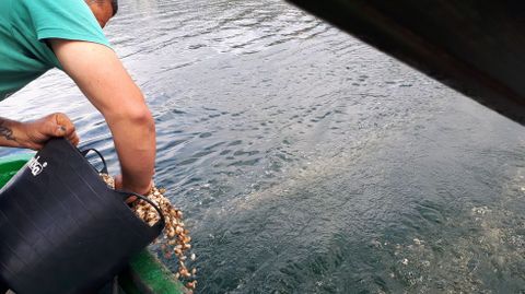 Así se siembra la ría de Pontevedra para cosechar luego marisco