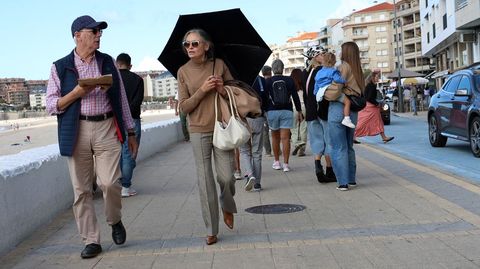 Mari Ángeles, otra turista que salió a caminar por el paseo de Silgar, indica que su estancia en Sanxenxo está siendo «de momento muy bien, y la tarde también si no llueve». Ella y su familia llevan cuatro días en hotel en la capital turística y el tiempo no les coge desprevenidos: «Sabemos perfectamente a donde hemos venido, porque ya estuvimos aquí más veces».