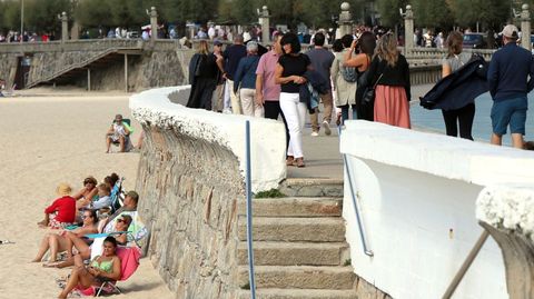 A las diez de la mañana el sol lucía sobre un cielo donde apenas había nubes en el frente marítimo de la localidad. En la playa, había quien no se resistía a echar la toalla, o abrir la silla, según el caso, y de aprovechar hasta el último rayo posible del astro rey. En el agua no se veía apenas gente, pero a las once el número de personas que decidió bajar al arenal para al menos mojar los pies en la orilla del mar era bastante apreciable pese a estar en la misma antesala del otoño.