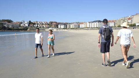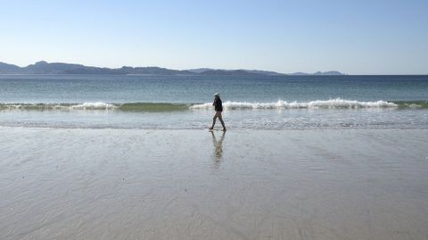 Paseos por la orilla en Silgar bajo un sol a 24 grados y chapuzones de agua «fría» en la playa