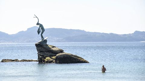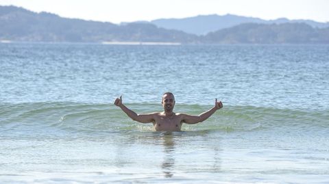 El buen tiempo permite bañarse en la playa de Silgar, en Sanxenxo, a 9 de octubre